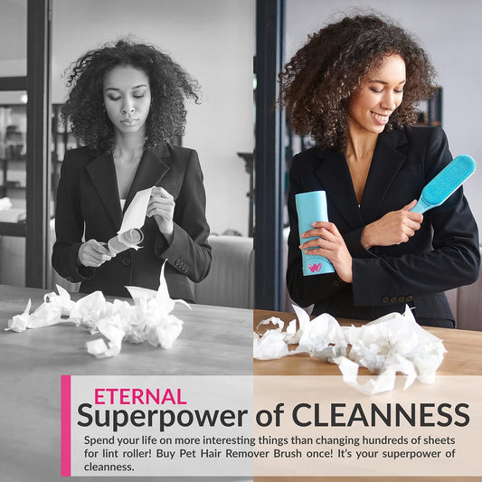 New Blue Self-Cleaning Double-Sided Pet Hair Remover for Couch, Furniture, Clothing, Car Seats, Carpet, Pet Bed - Dog & Cat Hair Remover, Fur & Lint Brush